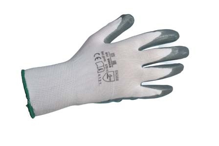 Detalji Proizvoda:Najlonske štrikane rukavice polumočene u sivi nitril sa elastičnom manšetom, u veličinama 8-11.Artikal 521200